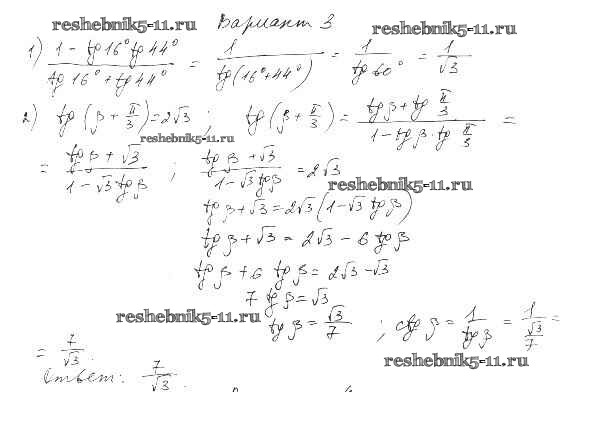 Готовая домашняя работа с ответами по Алгебре за 10 класс Александрова Самостоятельные работы Базовый уровень Мнемозина 2017 ФГОС - СР-27. Тангенс суммы и разности аргументов вариант 3