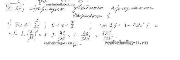 Готовая домашняя работа с ответами по Алгебре за 10 класс Александрова Самостоятельные работы Базовый уровень Мнемозина 2017 ФГОС - СР-28. Формулы двойного аргумента вариант 1