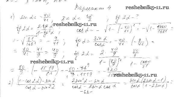 Готовая домашняя работа с ответами по Алгебре за 10 класс Александрова Самостоятельные работы Базовый уровень Мнемозина 2017 ФГОС - СР-28. Формулы двойного аргумента вариант 4
