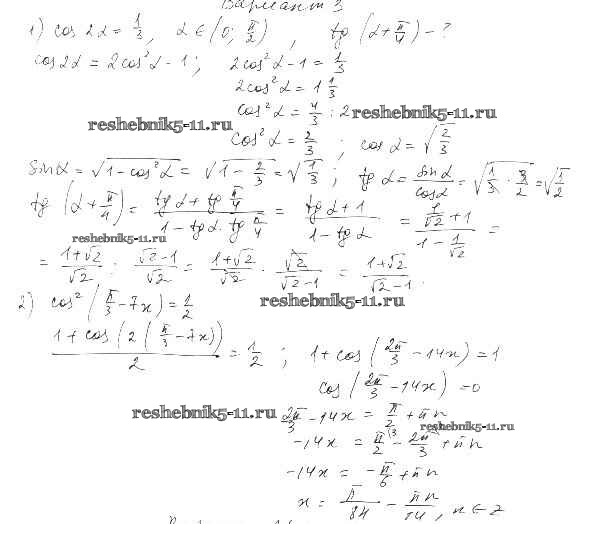 Готовая домашняя работа с ответами по Алгебре за 10 класс Александрова Самостоятельные работы Базовый уровень Мнемозина 2017 ФГОС - СР-29. Формулы двойного аргумента вариант 3