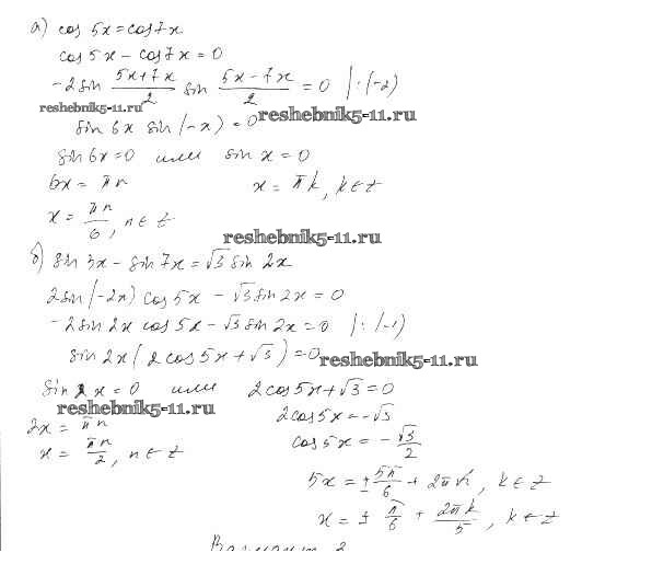 Готовая домашняя работа с ответами по Алгебре за 10 класс Александрова Самостоятельные работы Базовый уровень Мнемозина 2017 ФГОС - СР-30. Преобразование суммы тригонометрических функций в произведении вариант 2
