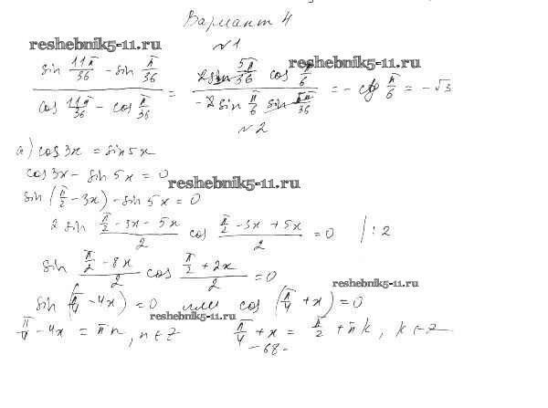 Готовая домашняя работа с ответами по Алгебре за 10 класс Александрова Самостоятельные работы Базовый уровень Мнемозина 2017 ФГОС - СР-30. Преобразование суммы тригонометрических функций в произведении вариант 4