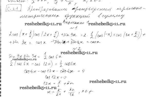 Готовая домашняя работа с ответами по Алгебре за 10 класс Александрова Самостоятельные работы Базовый уровень Мнемозина 2017 ФГОС - СР-31. Преобразование произведения тригонометрических функций в сумму вариант 1