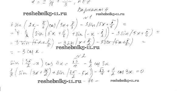 Готовая домашняя работа с ответами по Алгебре за 10 класс Александрова Самостоятельные работы Базовый уровень Мнемозина 2017 ФГОС - СР-31. Преобразование произведения тригонометрических функций в сумму вариант 4
