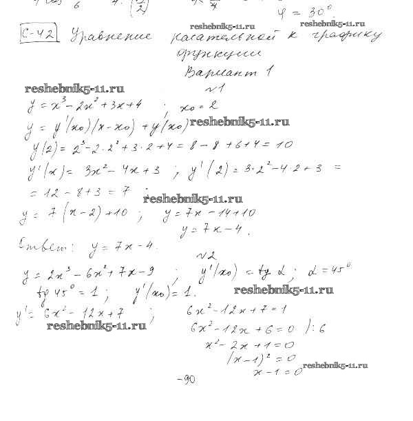 Готовая домашняя работа с ответами по Алгебре за 10 класс Александрова Самостоятельные работы Базовый уровень Мнемозина 2017 ФГОС - СР-42. Уравнение касательной к графику функции вариант 1