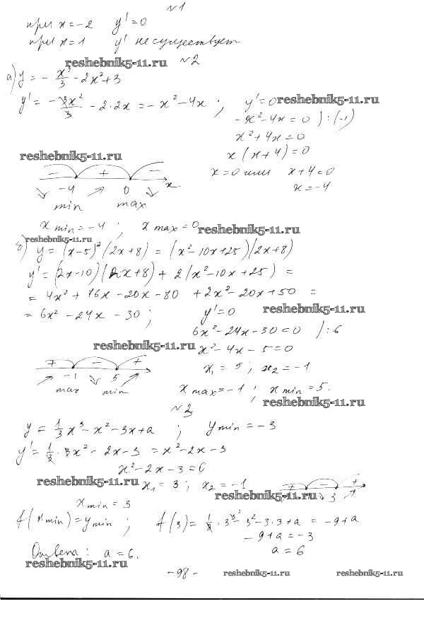 Готовая домашняя работа с ответами по Алгебре за 10 класс Александрова Самостоятельные работы Базовый уровень Мнемозина 2017 ФГОС - СР-44. Применение производной для исследования функций на экстремум вариант 1