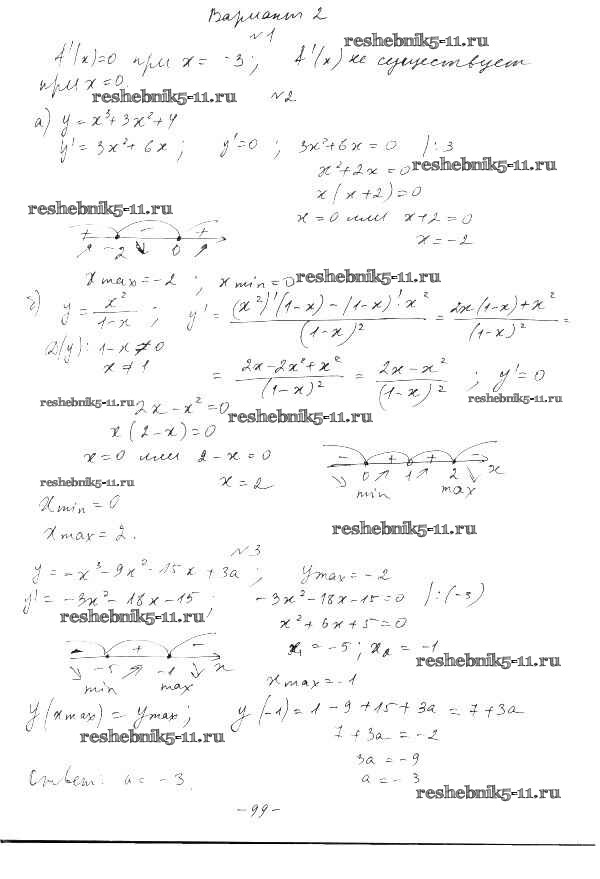 Готовая домашняя работа с ответами по Алгебре за 10 класс Александрова Самостоятельные работы Базовый уровень Мнемозина 2017 ФГОС - СР-44. Применение производной для исследования функций на экстремум вариант 2
