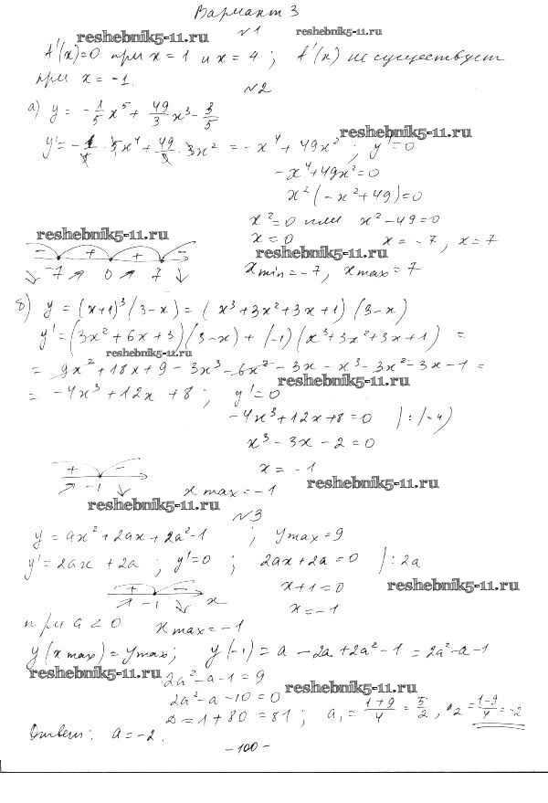 Готовая домашняя работа с ответами по Алгебре за 10 класс Александрова Самостоятельные работы Базовый уровень Мнемозина 2017 ФГОС - СР-44. Применение производной для исследования функций на экстремум вариант 3