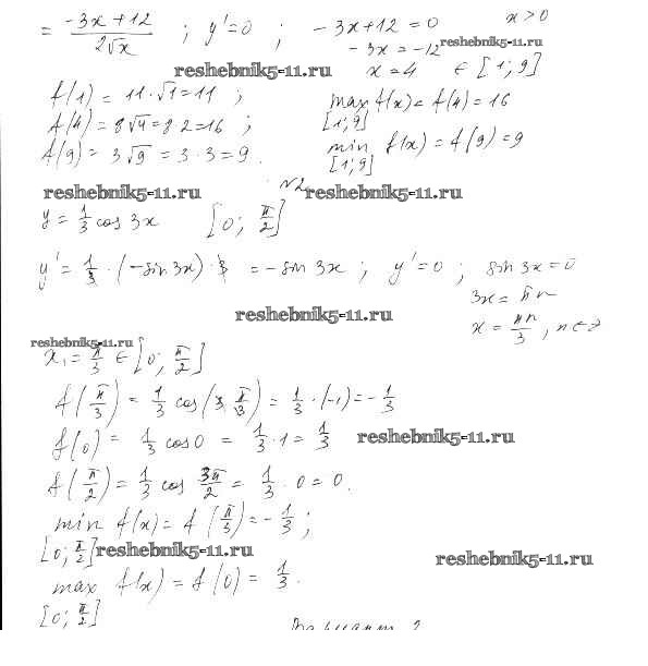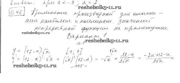 Готовая домашняя работа с ответами по Алгебре за 10 класс Александрова Самостоятельные работы Базовый уровень Мнемозина 2017 ФГОС - СР-46. Применение производной для отыскивания наибольшего и наименьшего значений непрерывной функции на промежутке вариант 1
