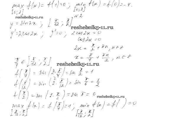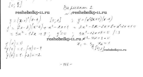 Готовая домашняя работа с ответами по Алгебре за 10 класс Александрова Самостоятельные работы Базовый уровень Мнемозина 2017 ФГОС - СР-46. Применение производной для отыскивания наибольшего и наименьшего значений непрерывной функции на промежутке вариант 2