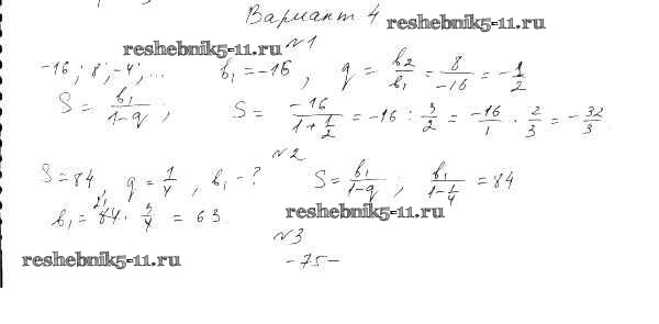Готовая домашняя работа с ответами по Алгебре за 10 класс Александрова Самостоятельные работы Базовый уровень Мнемозина 2017 ФГОС - СР-34. Сумма бесконечной геометрической прогрессии вариант 4
