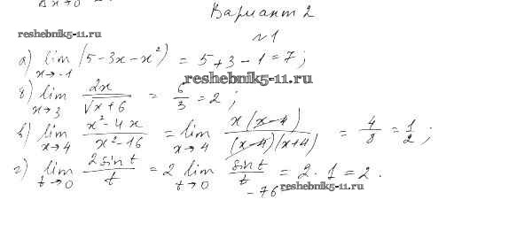 Готовая домашняя работа с ответами по Алгебре за 10 класс Александрова Самостоятельные работы Базовый уровень Мнемозина 2017 ФГОС - СР-35. Предел функции вариант 2
