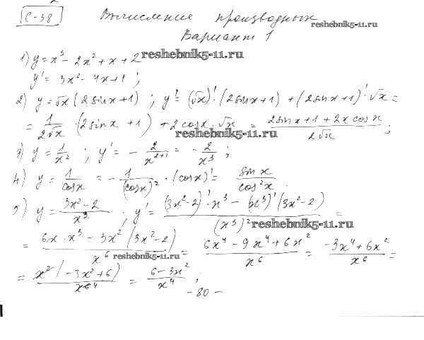 Готовая домашняя работа с ответами по Алгебре за 10 класс Александрова Самостоятельные работы Базовый уровень Мнемозина 2017 ФГОС - СР-38. Вычисление производных вариант 1