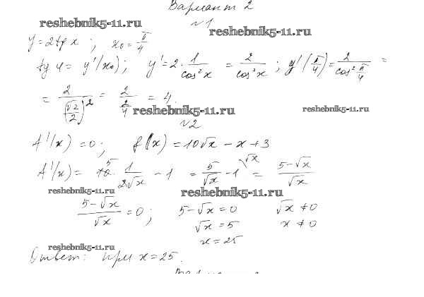 Готовая домашняя работа с ответами по Алгебре за 10 класс Александрова Самостоятельные работы Базовый уровень Мнемозина 2017 ФГОС - СР-39. Вычисление производных вариант 2