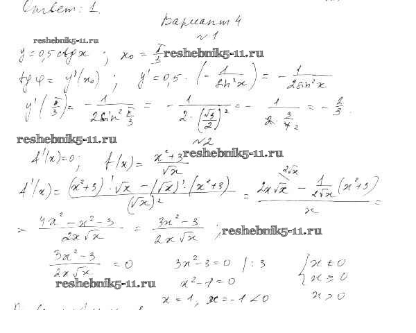 Готовая домашняя работа с ответами по Алгебре за 10 класс Александрова Самостоятельные работы Базовый уровень Мнемозина 2017 ФГОС - СР-39. Вычисление производных вариант 4