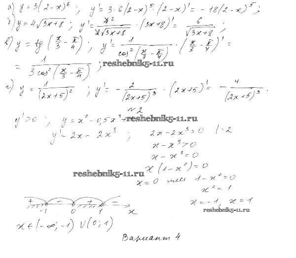 Готовая домашняя работа с ответами по Алгебре за 10 класс Александрова Самостоятельные работы Базовый уровень Мнемозина 2017 ФГОС - СР-40. Вычисление производных вариант 3