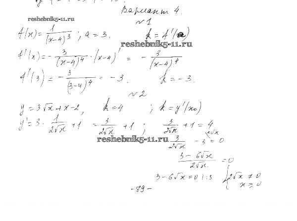 Готовая домашняя работа с ответами по Алгебре за 10 класс Александрова Самостоятельные работы Базовый уровень Мнемозина 2017 ФГОС - СР-41. Уравнение касательной к графику функции вариант 4