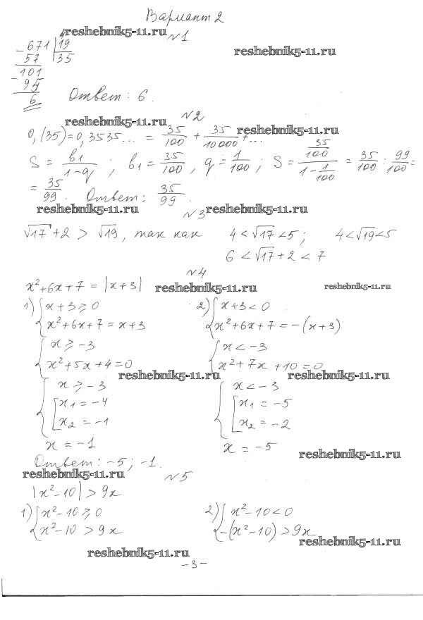 Готовая домашняя работа с ответами по Алгебре за 10 класс Глизбург Контрольные работы Базовый и углубленный уровень Мнемозина 2014 ФГОС - КР-1 вариант 2
