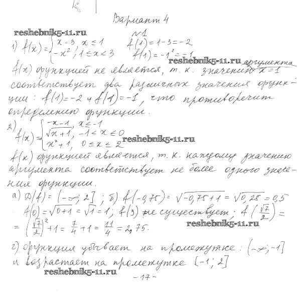 Готовая домашняя работа с ответами по Алгебре за 10 класс Глизбург Контрольные работы Базовый и углубленный уровень Мнемозина 2014 ФГОС - КР-2 вариант 4