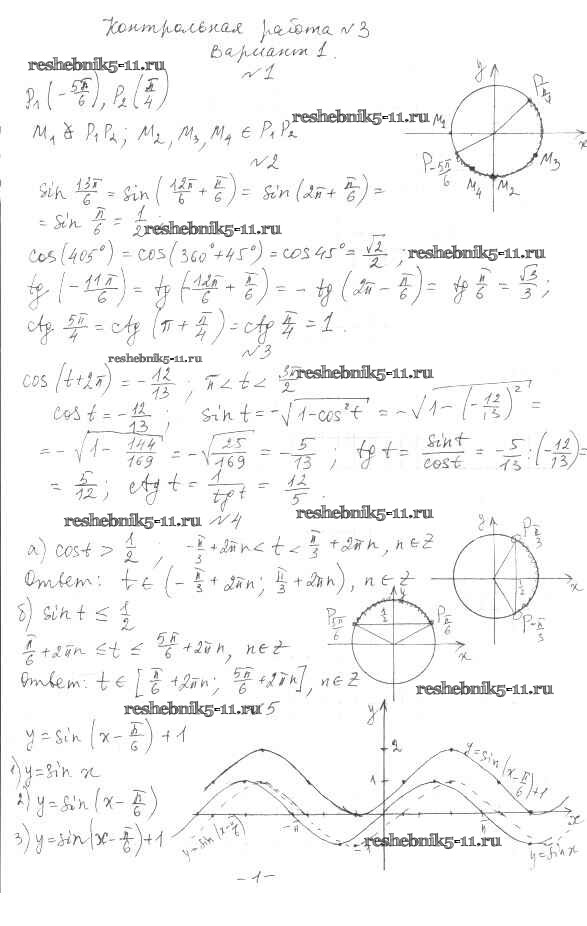 Готовая домашняя работа с ответами по Алгебре за 10 класс Глизбург Контрольные работы Базовый и углубленный уровень Мнемозина 2014 ФГОС - КР-3 вариант 1