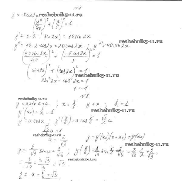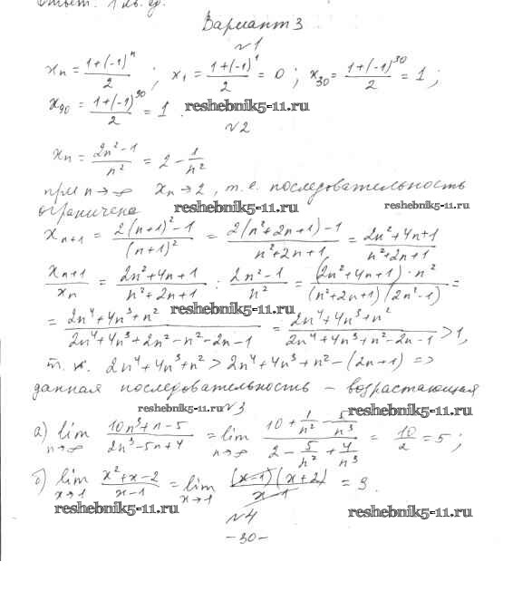 Готовая домашняя работа с ответами по Алгебре за 10 класс Глизбург Контрольные работы Базовый и углубленный уровень Мнемозина 2014 ФГОС - КР-7 вариант 3