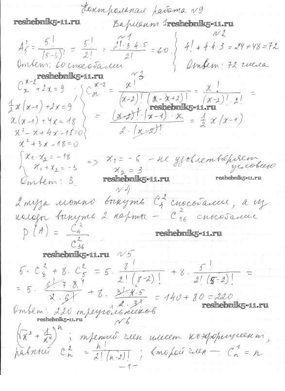 Готовая домашняя работа с ответами по Алгебре за 10 класс Глизбург Контрольные работы Базовый и углубленный уровень Мнемозина 2014 ФГОС - КР-9 вариант 1