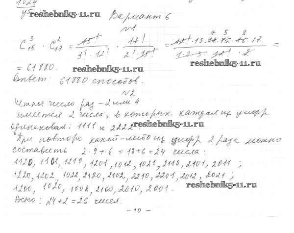 Готовая домашняя работа с ответами по Алгебре за 10 класс Глизбург Контрольные работы Базовый и углубленный уровень Мнемозина 2014 ФГОС - КР-9 вариант 6