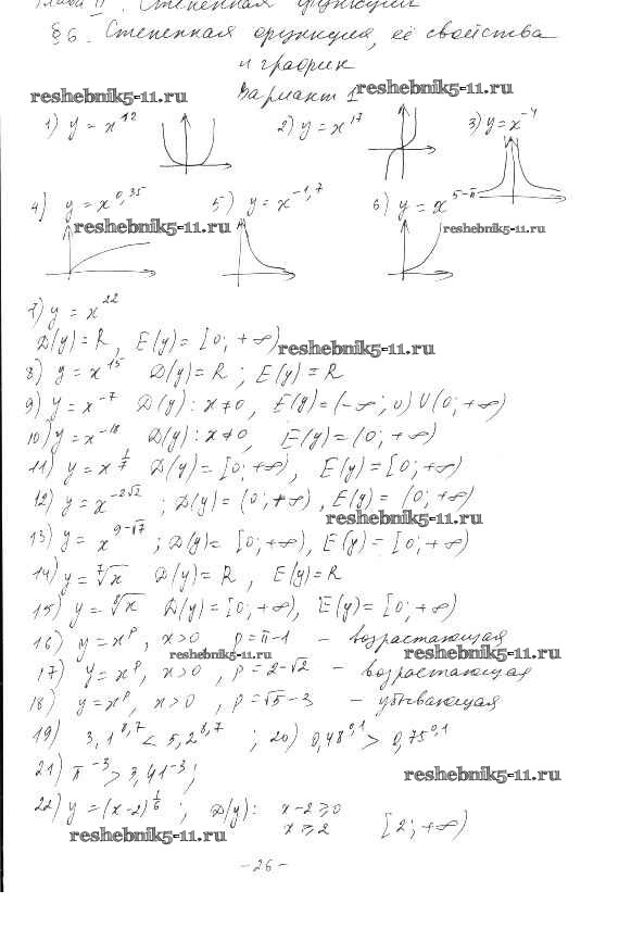 Готовая домашняя работа с ответами по Алгебре за 10 класс Шабунин, Ткачева, Федорова Дидактические материалы Базовый и углубленный уровень Просвещение 2017 ФГОС - §6. Степенная функция, её свойства и график вариант 1