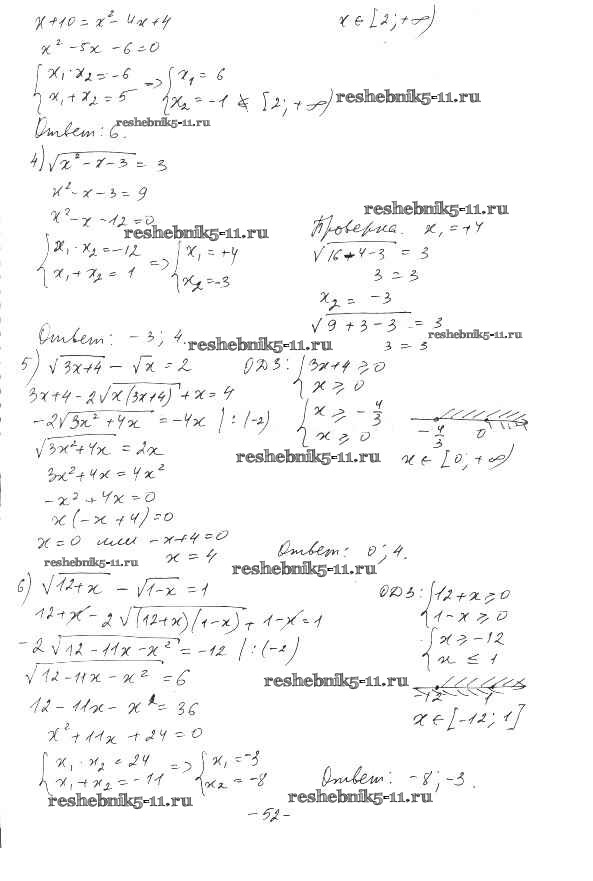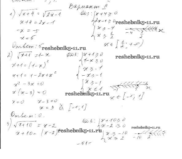 Готовая домашняя работа с ответами по Алгебре за 10 класс Шабунин, Ткачева, Федорова Дидактические материалы Базовый и углубленный уровень Просвещение 2017 ФГОС - §9. Иррациональные уравнения вариант 2
