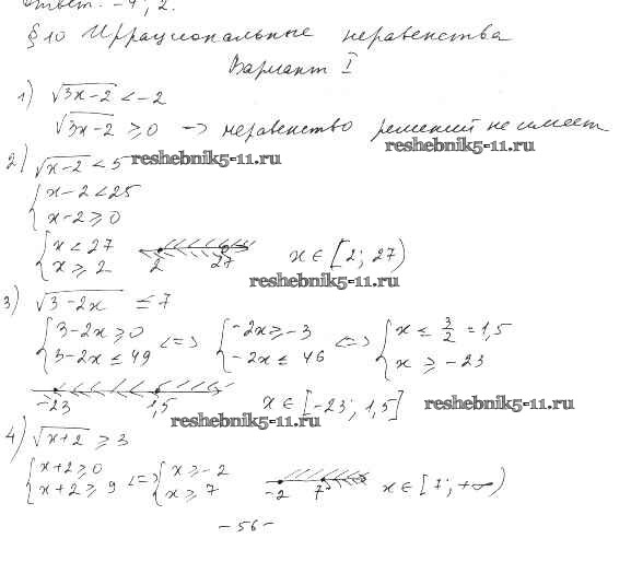 Готовая домашняя работа с ответами по Алгебре за 10 класс Шабунин, Ткачева, Федорова Дидактические материалы Базовый и углубленный уровень Просвещение 2017 ФГОС - §10. Иррациональные неравенства вариант 1