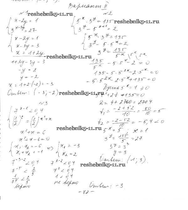 Готовая домашняя работа с ответами по Алгебре за 10 класс Шабунин, Ткачева, Федорова Дидактические материалы Базовый и углубленный уровень Просвещение 2017 ФГОС - §14. Системы показательных уравнений и неравенств вариант 2