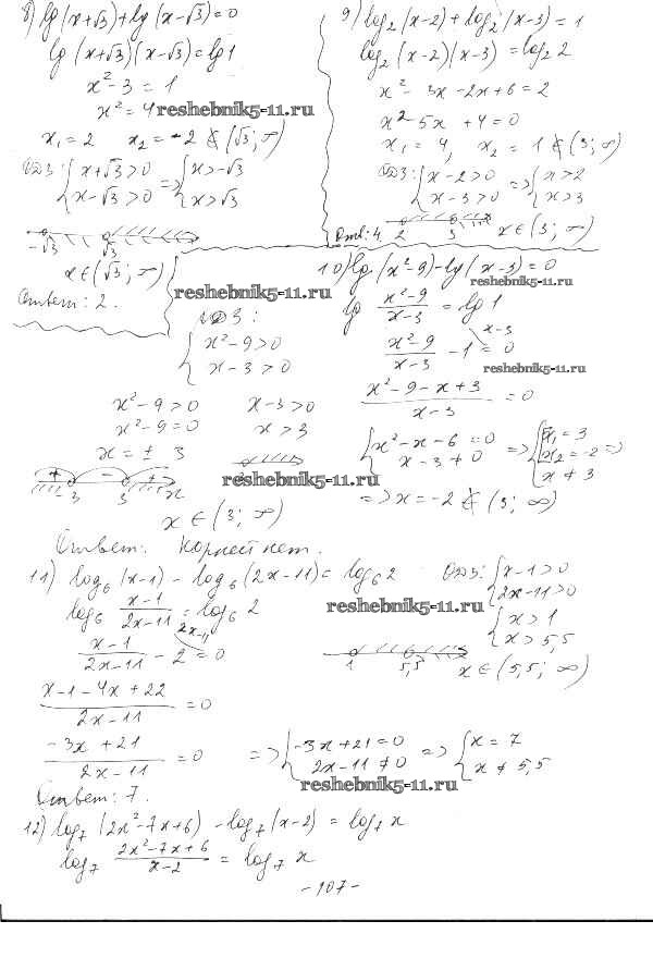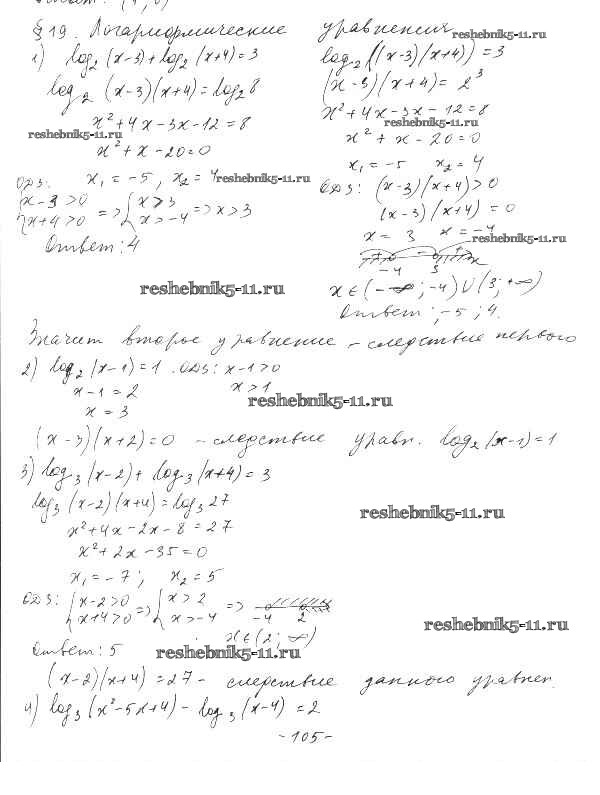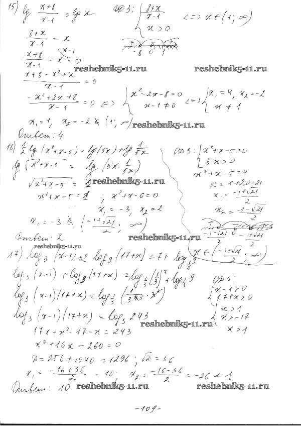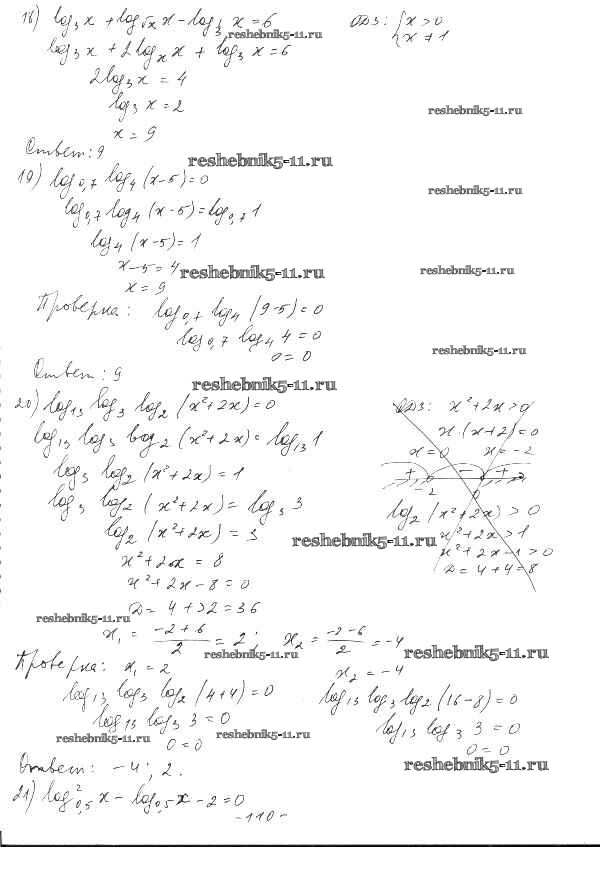 Готовая домашняя работа с ответами по Алгебре за 10 класс Шабунин, Ткачева, Федорова Дидактические материалы Базовый и углубленный уровень Просвещение 2017 ФГОС - §19. Логарифмические уравнения вариант 1