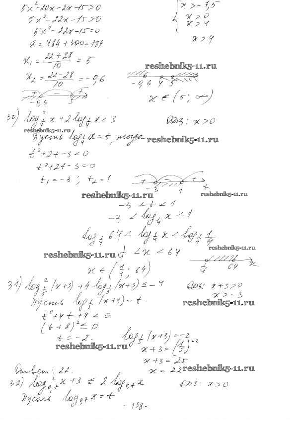 Готовая домашняя работа с ответами по Алгебре за 10 класс Шабунин, Ткачева, Федорова Дидактические материалы Базовый и углубленный уровень Просвещение 2017 ФГОС - §20. Логарифмические неравенства вариант 2