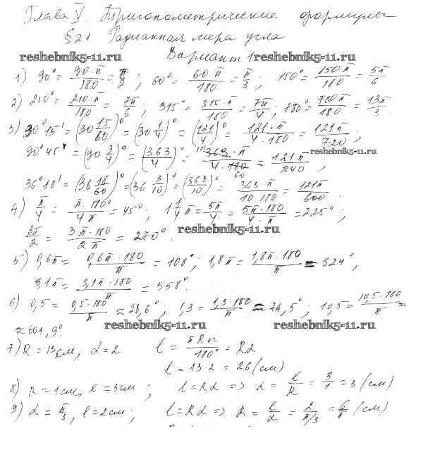 Готовая домашняя работа с ответами по Алгебре за 10 класс Шабунин, Ткачева, Федорова Дидактические материалы Базовый и углубленный уровень Просвещение 2017 ФГОС - §21. Радианная мера угла вариант 1
