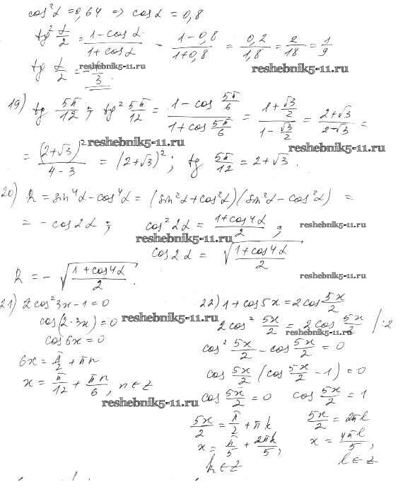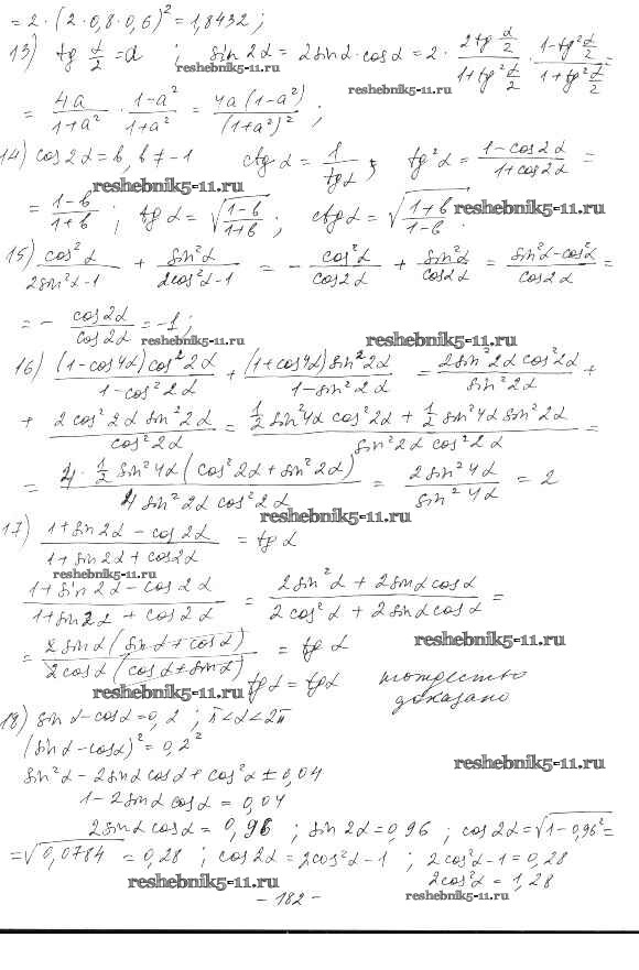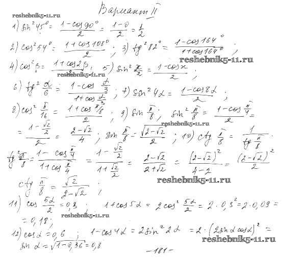Готовая домашняя работа с ответами по Алгебре за 10 класс Шабунин, Ткачева, Федорова Дидактические материалы Базовый и углубленный уровень Просвещение 2017 ФГОС - §30. Синус, косинус и тангенс половинного угла вариант 2