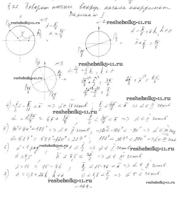 Готовая домашняя работа с ответами по Алгебре за 10 класс Шабунин, Ткачева, Федорова Дидактические материалы Базовый и углубленный уровень Просвещение 2017 ФГОС - §22. Поворот точки вокруг начала координат вариант 1