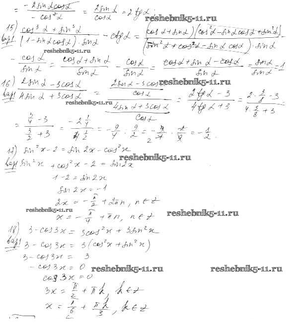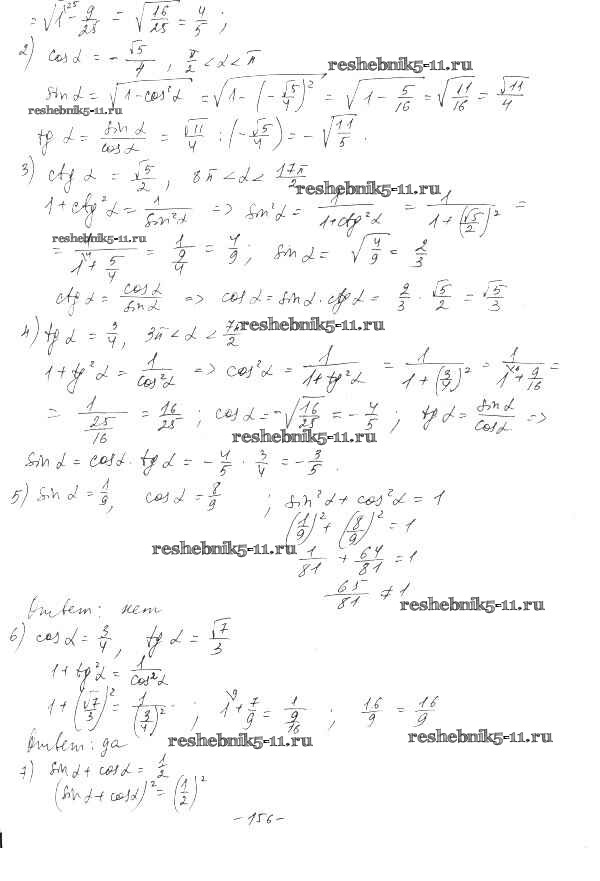 Готовая домашняя работа с ответами по Алгебре за 10 класс Шабунин, Ткачева, Федорова Дидактические материалы Базовый и углубленный уровень Просвещение 2017 ФГОС - §25. Зависимость между синусом, косинусом и тангенсом одного и того же угла вариант 2