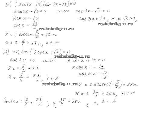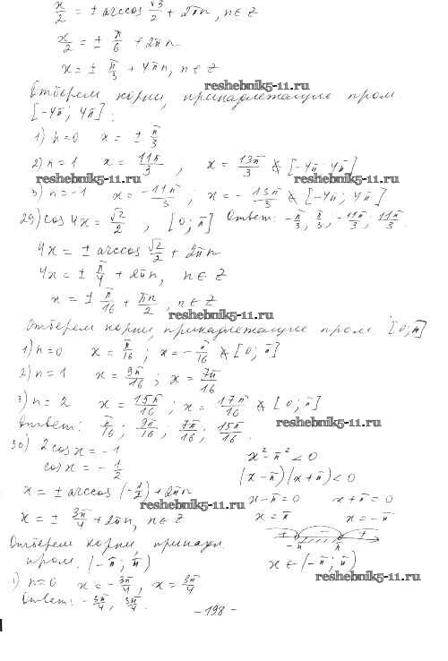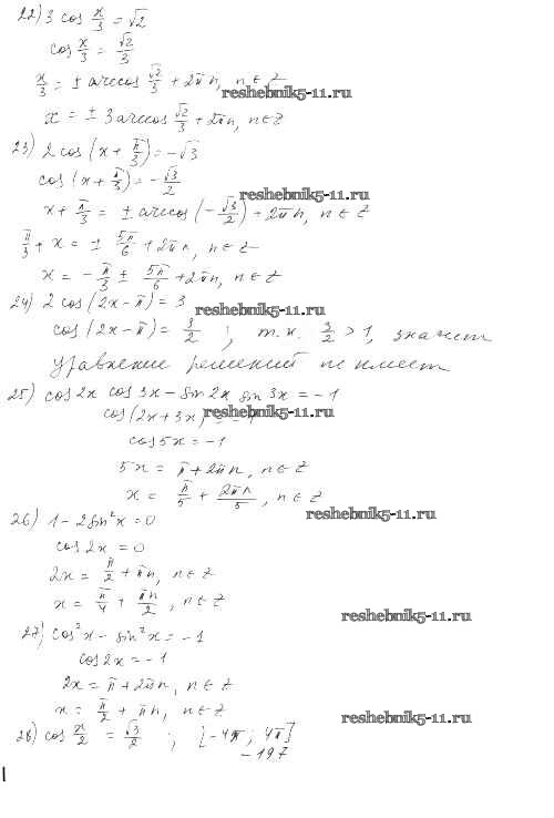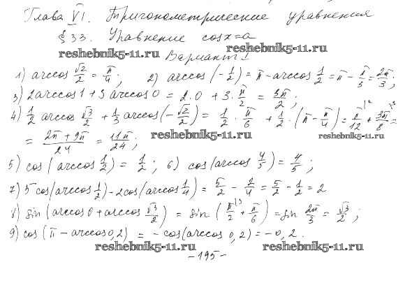 Готовая домашняя работа с ответами по Алгебре за 10 класс Шабунин, Ткачева, Федорова Дидактические материалы Базовый и углубленный уровень Просвещение 2017 ФГОС - §33. Уравнение cos л: = а вариант 1