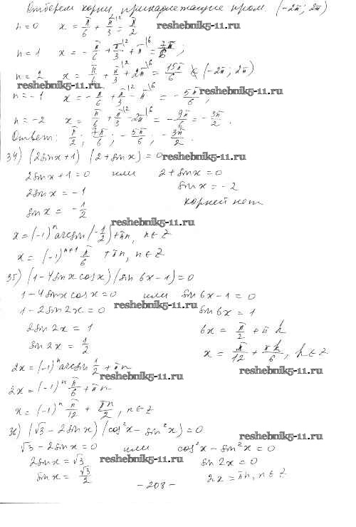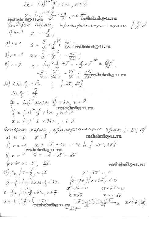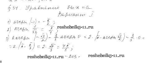 Готовая домашняя работа с ответами по Алгебре за 10 класс Шабунин, Ткачева, Федорова Дидактические материалы Базовый и углубленный уровень Просвещение 2017 ФГОС - §34. Уравнение sin л: = а вариант 1