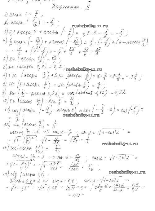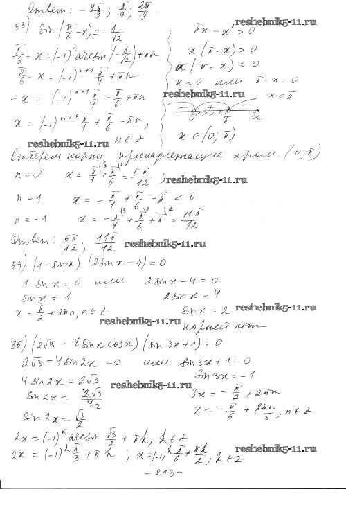 Готовая домашняя работа с ответами по Алгебре за 10 класс Шабунин, Ткачева, Федорова Дидактические материалы Базовый и углубленный уровень Просвещение 2017 ФГОС - §34. Уравнение sin л: = а вариант 2