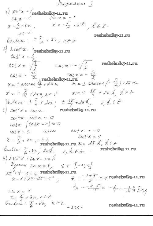Готовая домашняя работа с ответами по Алгебре за 10 класс Шабунин, Ткачева, Федорова Дидактические материалы Базовый и углубленный уровень Просвещение 2017 ФГОС - §36. Решение тригонометрических уравнений вариант 1