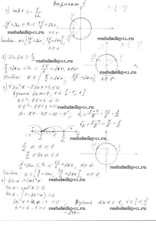 Готовая домашняя работа с ответами по Алгебре за 10 класс Шабунин, Ткачева, Федорова Дидактические материалы Базовый и углубленный уровень Просвещение 2017 ФГОС - §37. Примеры решения простейших тригонометрических неравенств вариант 2