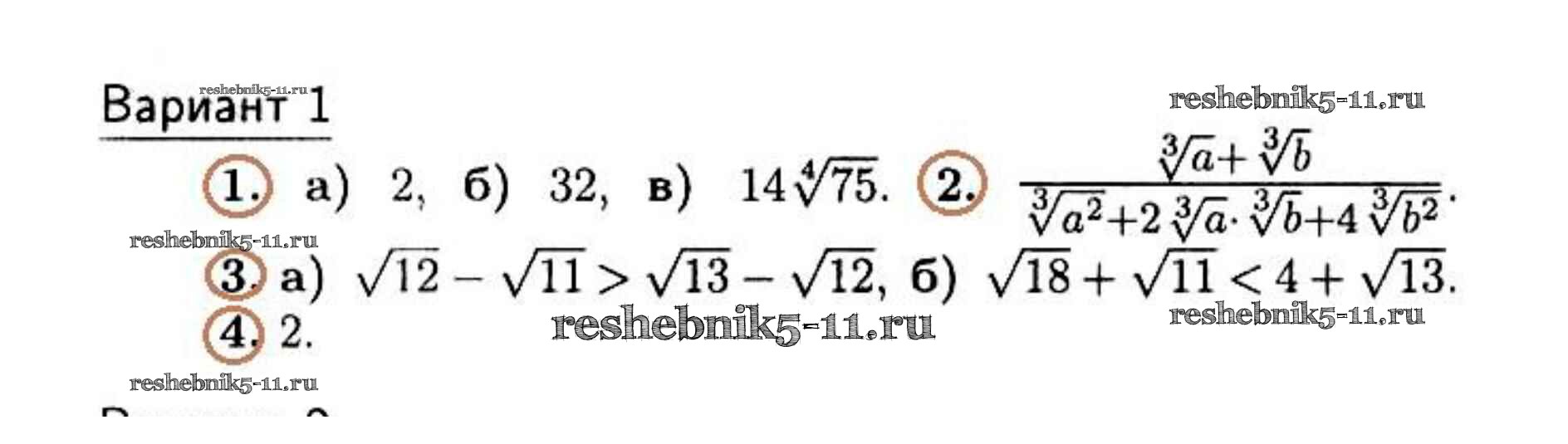 Готовая домашняя работа с ответами по Алгебре за 10 класс Зив, Гольдич Дидактические материалы Виктория плюс 2015 - Контрольная работа 1 (Варианты) 1