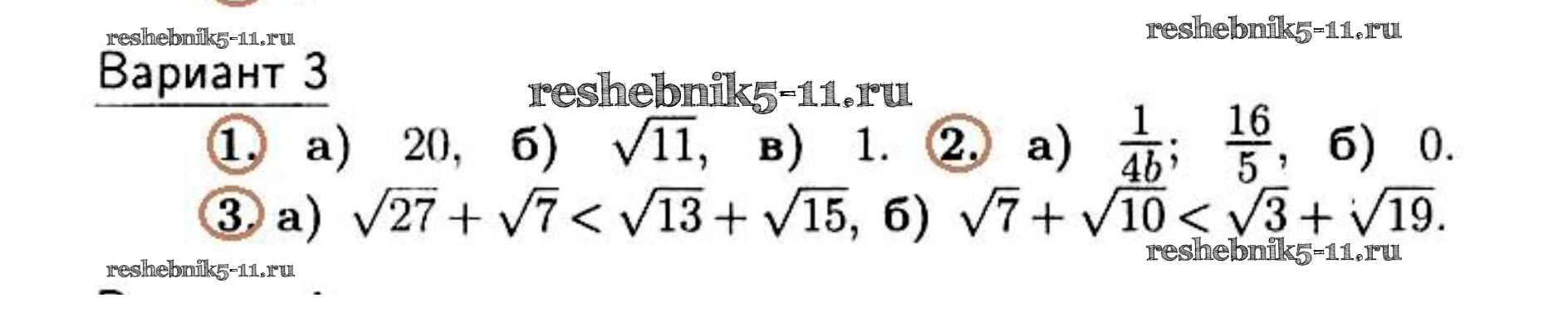 Готовая домашняя работа с ответами по Алгебре за 10 класс Зив, Гольдич Дидактические материалы Виктория плюс 2015 - Контрольная работа 1 (Варианты) 3