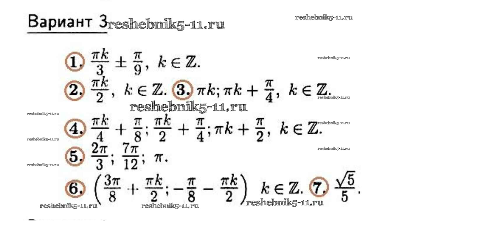 Готовая домашняя работа с ответами по Алгебре за 10 класс Зив, Гольдич Дидактические материалы Виктория плюс 2015 - Контрольная работа 6 (Варианты) 3