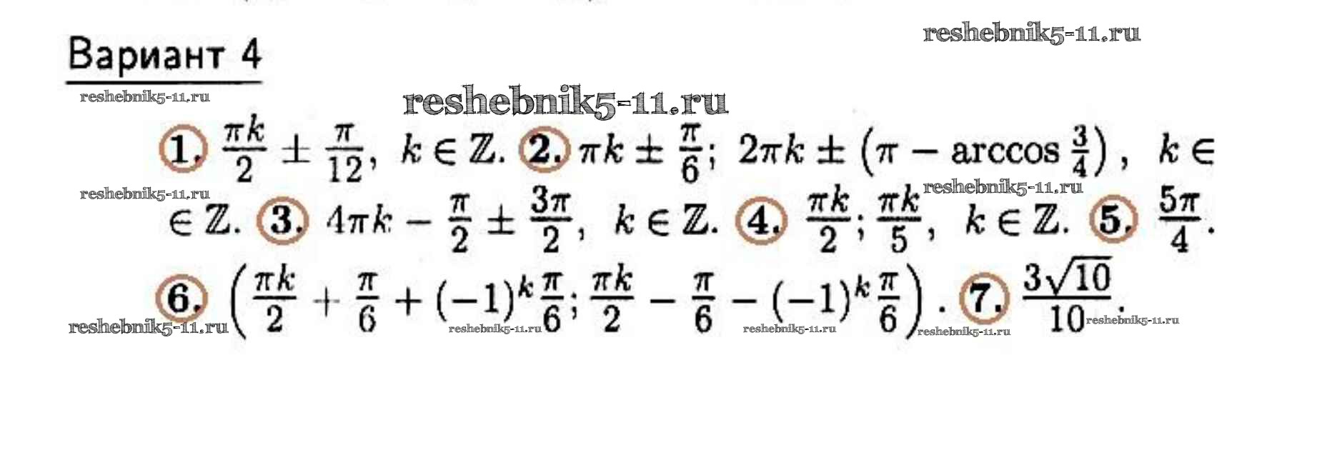 Готовая домашняя работа с ответами по Алгебре за 10 класс Зив, Гольдич Дидактические материалы Виктория плюс 2015 - Контрольная работа 6 (Варианты) 4