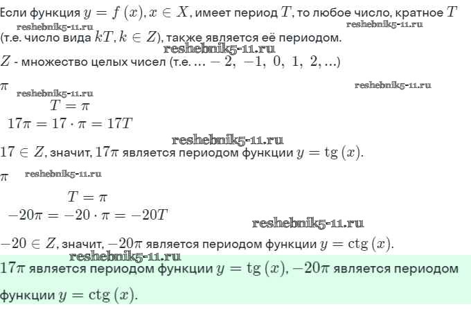 Готовая домашняя работа с ответами по Алгебре за 10 класс Мордкович, Семёнов Учебник Базовый и углубленный уровень Мнемозина 2017 ФГОС - §20. Функции у = tg х, у = ctg х, их свойства и графики 1