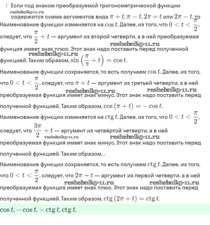 Готовая домашняя работа с ответами по Алгебре за 10 класс Мордкович, Семёнов Учебник Базовый и углубленный уровень Мнемозина 2017 ФГОС - §26. Формулы приведения 1