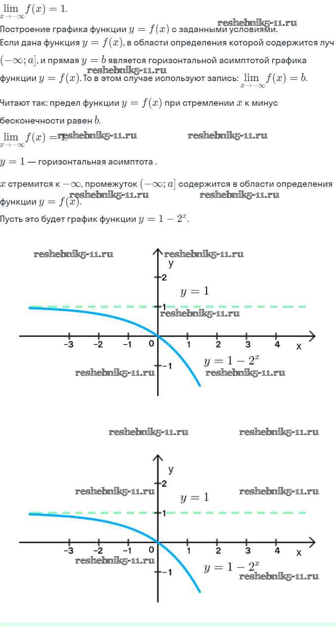 Готовая домашняя работа с ответами по Алгебре за 10 класс Мордкович, Семёнов Учебник Базовый и углубленный уровень Мнемозина 2017 ФГОС - §39. Предел функции на бесконечности 1