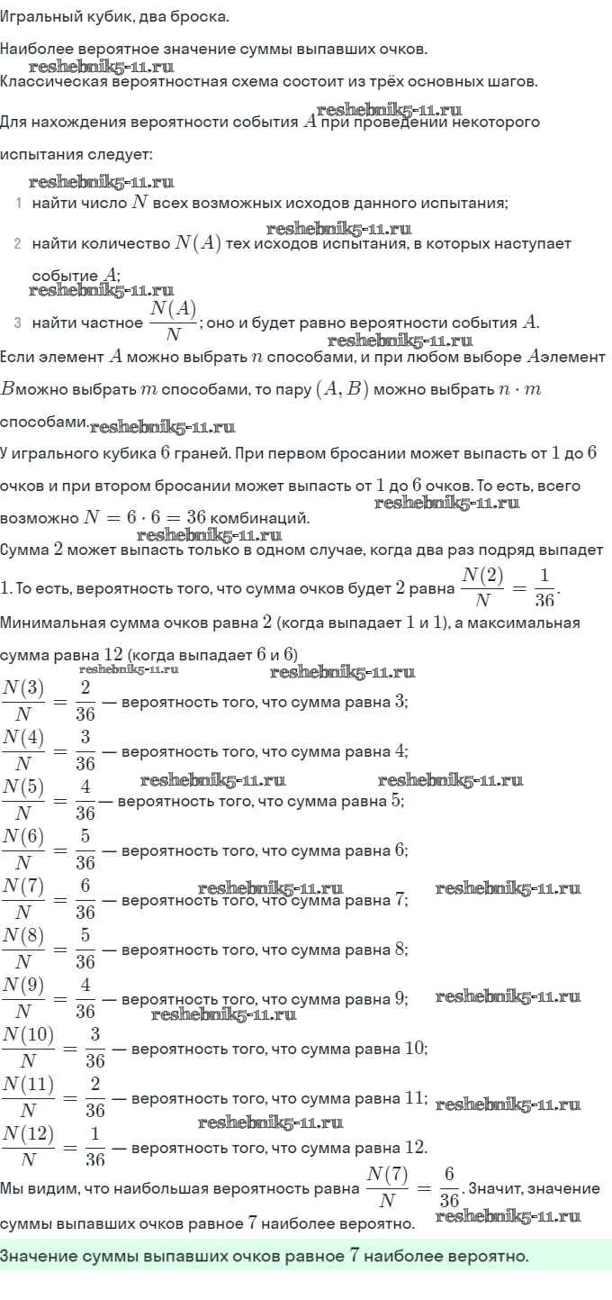 Готовая домашняя работа с ответами по Алгебре за 10 класс Мордкович, Семёнов Учебник Базовый и углубленный уровень Мнемозина 2017 ФГОС - §49. Случайные события и их вероятности 6